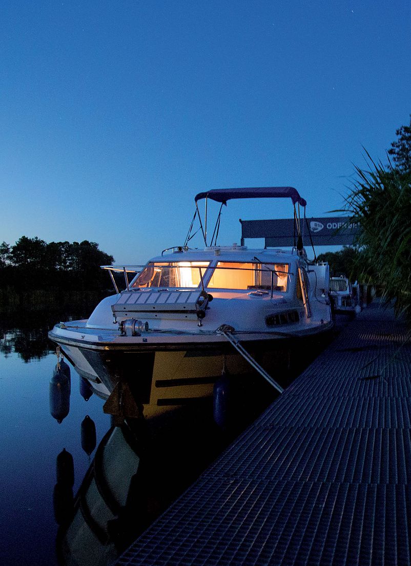 Nie trzeba być milionerem żeby wypożyczyć łódź motorową, a warto się do tego przymierzyć, bo Pojezierze Meklemburskie w Niemczech jest piękne.