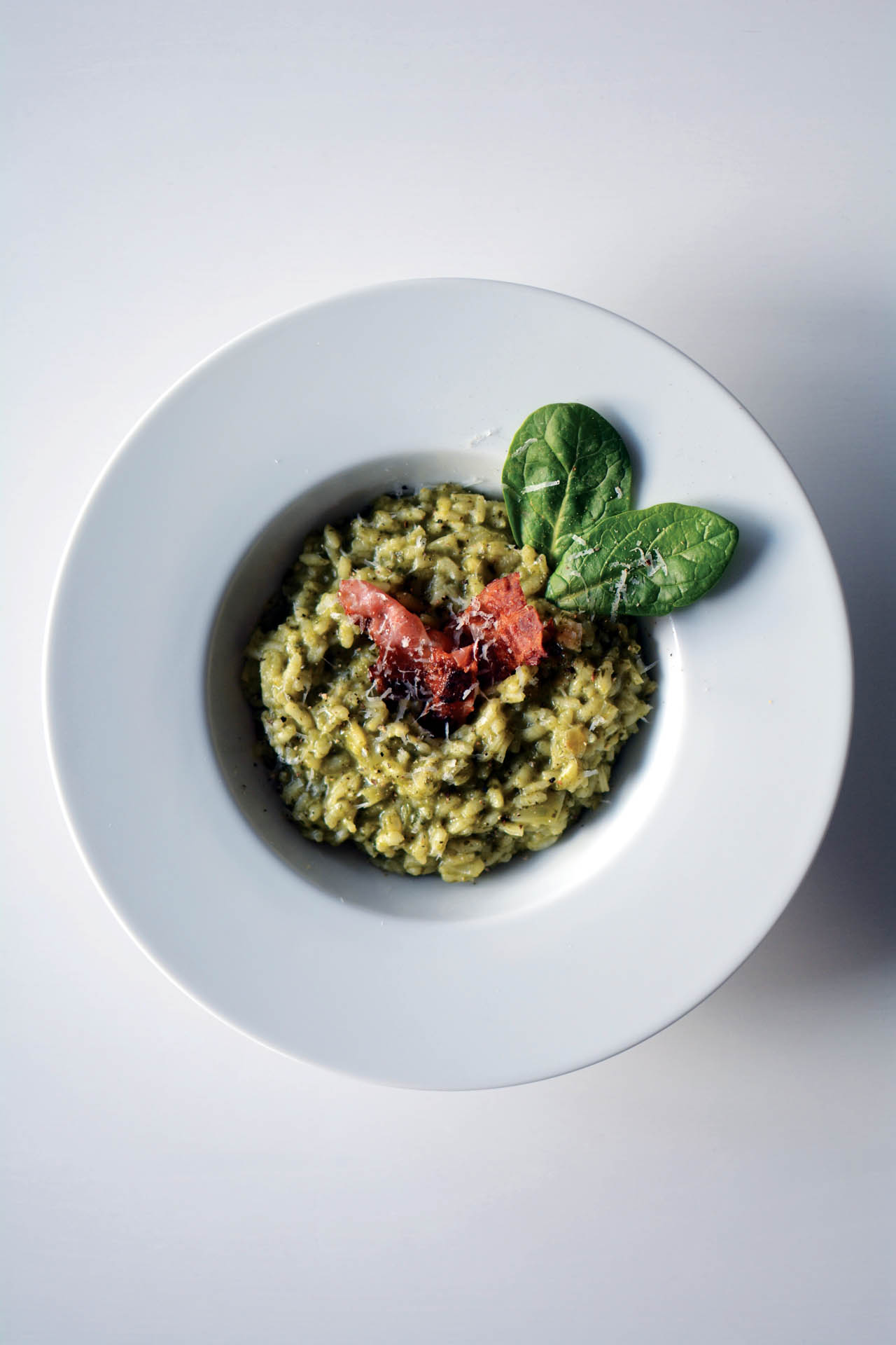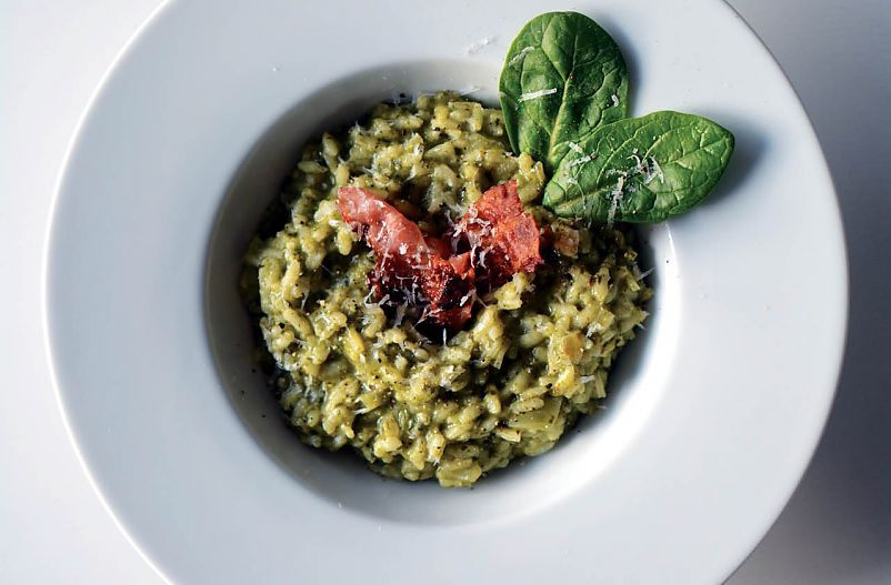 Risotto ze szpinakiem, gorgonzolą i chrupiącym boczkiem