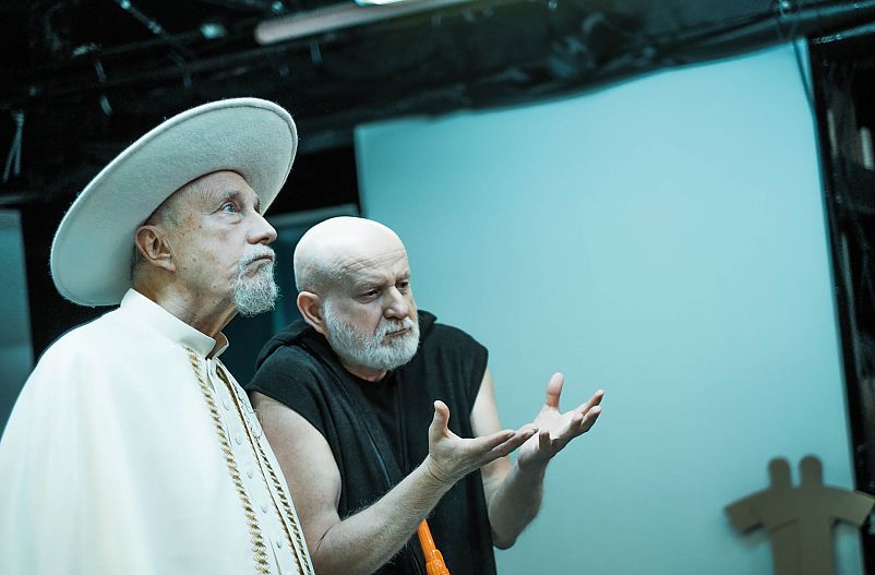 Przestrzeń merytoryczna spektaklu to próba redefinicji Nowego Testamentu. Apostoł Piotr i Ewangelista Łukasz w ramach przewrotnego procesu badawczego nie tylko piszą go na nowo, ale od razu inscenizują. Bartosz Żurowski, reżyser i scenarzysta w jednej osobie, szczególną uwagę zwraca na zmiany jakie zaszły przez dwa tysiąclecia w języku, zwyczajach, obyczajach, czyli po prostu w ludzkiej świadomości. Szczególny nacisk kładzie na żywe dziś tematy, nie tylko związane z kryzysem wiary, ale także świeckie aspekty, choćby emancypacja kobiet. To ostatnie miało z pewnością wpływ na powierzenie w dramacie roli Jezusa kobiecie. W prapremierowej inscenizacji w tę rolę brawurowo wcieliła się Beata Zygarlicka. Ileż w jej kreacji dystansu, humoru, ale też niezwykłej mądrości. Jezus Zygarlickiej jest poczciwy, sprawiedliwy, nie ma w sobie żadnego boskiego pierwiastka, jest – zupełnie jak politycy partii rządzącej – z ludu i z ludem. Świetny jest także Jacek Piątkowski jako Apostoł Piotr. Aktor niemal nie schodzi ze sceny, jest nie tylko konferansjerem, ale swego rodzaju demiurgiem. Kiedy trzeba prawi mądrze, kiedy indziej bawi do łez. Znakomicie radzi sobie na scenie pozostała część zespołu (Magdalena Myszkiewicz, Robert Gondek, Michał Lewandowski, Maciej Litkowski), ale niestety Żurowski nadmiernie epatuje teatralnymi formami, każda kolejna scena to próba powołania odmiennej stylistyki, powierzenia aktorom coraz to nowych zadań (niepotrzebne, przerysowane „układy choreograficzne”), a nawet improwizacji. To nie pozwala na zbudowanie konsekwentnych i spójnych postaci. Mało tego, rzecz toczy się w kilku planach – frontalnie, oraz za kulisami, co jest transmitowane na ekranie. Niestety te sekwencje, wyraźnie inspirowane językiem René Pollescha, nie powtarzają genialnego zamysłu tego niemieckiego teatralnego rewolucjonisty. Są nieudanym naśladownictwem i znów zupełnie zbędnym. Ale są też pyszne sceny, choćby ta w której papieski gest błogosławieństwa staje się motywem przewodnim „boysbandowego” tańca. Ożywczo działa w ogóle muzyka Adama Walickiego. To kontra dla miliona słów, jakie padają ze sceny. Ciekawie wypadła także wizualna strona produkcji (Maayan Strauss), szczególnie scenografii w połączeniu z reżyserią światła.