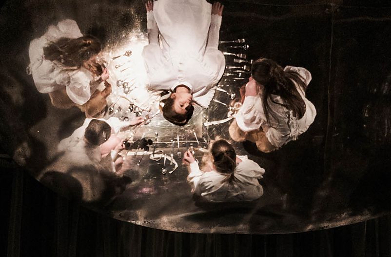 Po wyjściu ze spektaklu w podświadomości z prędkością i siłą porównywalną do mocy obliczeniowej wielkiego komputera gdzieś z Doliny Krzemowej przewija się pojęcie i znaczenie „tajemnicy”. Co się wydarzyło pod Wiszącą Skałą? Ten spektakl uderza także w nasz codzienny kierat życia uwalniając marzenia o zmianie na lepsze lub/i inne. Pensjonarska poprawność i pewna wiktoriańska sztywność kontrastuje z zagrożeniami zewnętrznego świata. Ale dziś to już nie tylko węże, pająki i pułapki natury nieożywionej, ani nawet znane nam współczesnym cywilizacyjne zagrożenia. Pandemia koronowirusa przewrotnie nadała oryginalnej wymowie powieści Joan Lindsay jeszcze nowego znaczenia. Jak będzie? To pytanie do sił natury… także ludzkiej. Mira Mańka zaproponowała kameralny i zaskakująco krótki, lecz intensywny spektakl pełen wielu teatralnych formatów. Wszystko jednak w idealnych proporcjach, nie pozwalających na zużycie środków. Znalazła miejsce nie tylko na akuratnie dawkowaną merytoryczną esencję, pozwalającą z łatwością odnaleźć narracje literackiego pierwowzoru, ale także wymowne pauzy, wysmakowane plastycznie sceny, pełnowymiarową pieśń, a nawet choreografie (subtelne układy Katarzyny Sikory). Pięć aktorek, w niewinnej pensjonarskiej bieli, znakomicie odnalazło się w atmosferze przedstawienia. „Przydział” postaci odbywał się procesie tworzenia, to niejako temperamenty poszczególnych aktorek wskazały im role. Wszystkie Panie, bez wyjątku, zaproponowały postaci rzetelnie zbudowane. Świetnie odnajdujące momenty „wyjścia” z ról, by epatować także frywolną prywatnością. Znakomitą pracę wykonała Anna Rogóż, jej scenografia i kostiumy brawurowo tworzą atmosferę spektaklu. Podglądanie pensjonarskiego świata przez białe firany, wymowne zmagania się z „trudnymi” strojami, a całość… filuterna. Do tego znakomita, dramatyczna muzyka Michała Lazara.