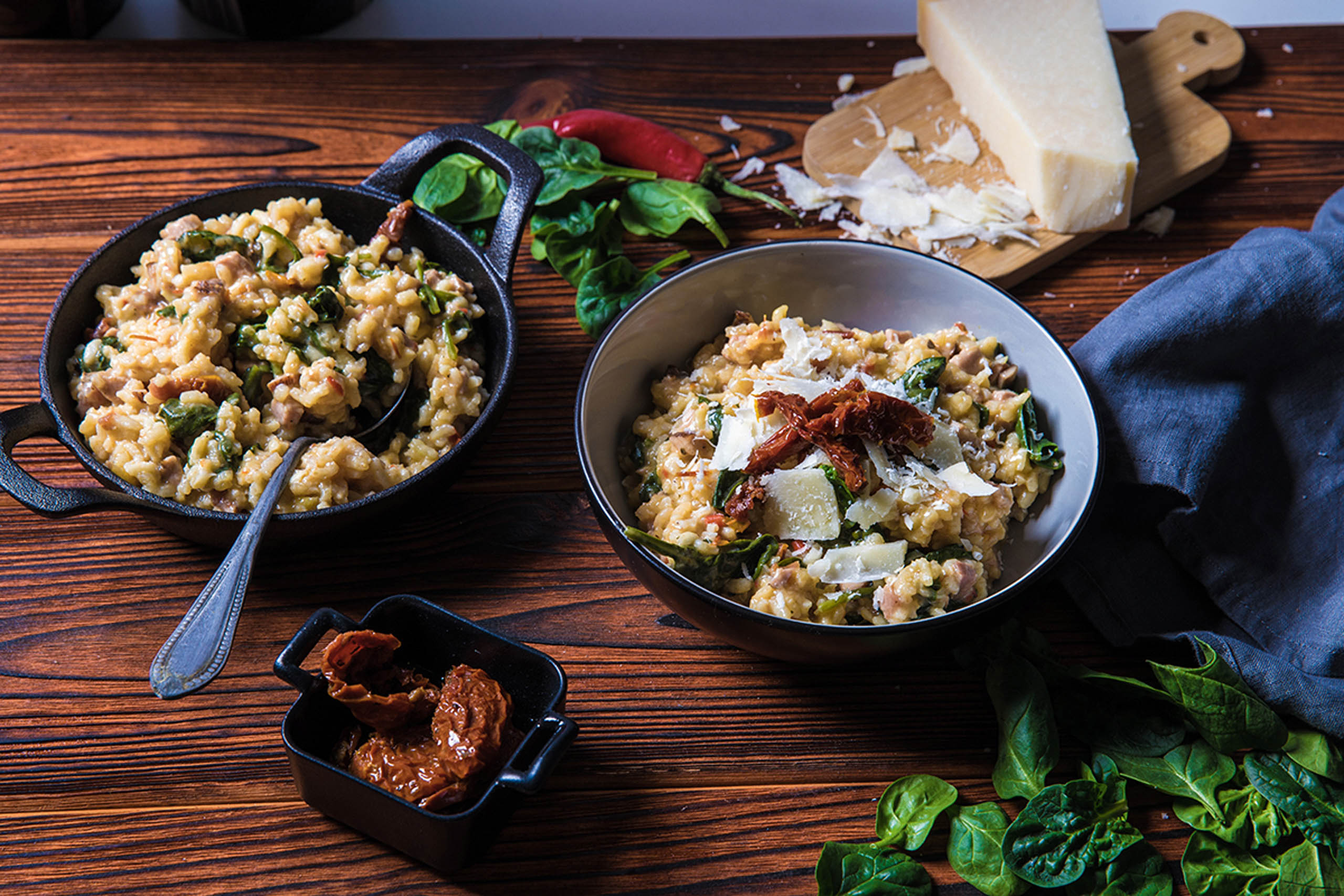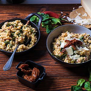 Risotto z szynką i szpinakiem