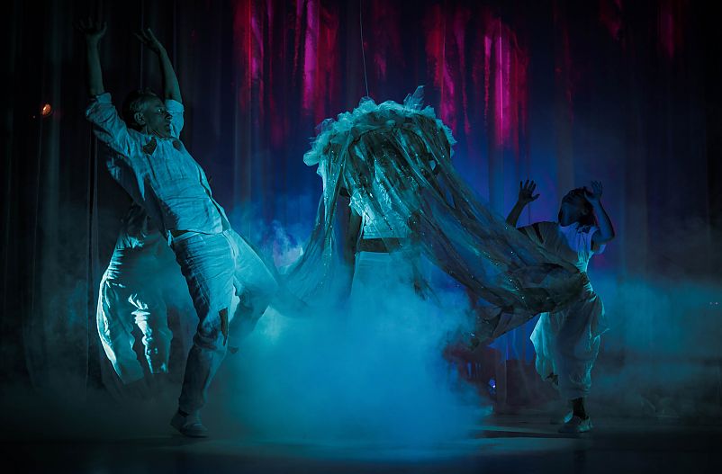 Byłem ostatnio w ptasim rezerwacie na wyspie Sobieszowskiej w Gdańsku. Największą atrakcją tego miejsca są unikatowe dźwięki wydawane przez rozmaite ptactwo. Niestety wybrałem się tam podczas majowego długiego weekendu i musiałem podzielić się wrażeniami i emocjami z dziesiątkami licznych rodzin. Rozbawione dzieciaki swoim głośnym zachowaniem skutecznie zagłuszały jakiekolwiek dźwięki przyrody. Na nic zdały się upomnienia rodziców, którzy puentowali wszelkie uwagi, że „to przecież tylko dzieci” albo czymś… niecenzuralnym (sic!). A gdyby wybrali się do Pleciugi na najnowszy spektakl wiedzieliby, że odgłosy natury to najpiękniejsza muzyka świata. Wiedzieliby, że nie idzie tu wyłącznie o zasady dobrego wychowania, ale przede wszystkim korzyści dla samych dzieciaków. O tym jest właśnie nowy tekst Magdaleny Mrozińskiej. To fantastyczny leksykon dźwięków natury – stukanie dzięcioła, huczenie sowy, granie pasikoników, bzyczenie muchy czy pszczoły, krakanie wron, ryk jelenia, a także dźwięki spadających króli deszczu, wiatru, szum drzew a nawet odgłosy pękającej kry. To wszystko w poetyckich utworach – w oryginale zapisanych na kartach wydanej przez teatr książki (z ilustracjami Kasi Walentynowicz), a w spektaklu… wyśpiewanych. Aktorom towarzyszy grający na żywo zespół muzyczny pod kierunkiem szefa Pleciugi – Tomasza Lewandowskiego. Męski zespół przepięknie uzupełnia – także dźwiękowo – nowa w zespole teatru arcyzdolna wiolonczelistka – Julia Kępisty (połówka duetu Siostry Kępisty). Ciekawie wypadły aranżacje poszczególnych utworów – od melodyjnych, wręcz tanecznych kompozycji, przez hip-hop po eksperymentalne dźwięki i okolice jazzu. Tak różnorodna muzyka pozwoliła aktorom na wokalne popisy (znakomici bez wyjątku: Maja Bartlewska, Marta Łągiewka, Kasia Klimek, Dariusz Kamiński oraz Mirek Kucharski.) Scenografka Anna Kolanecka przedzieliła scenę na półtransparentną lekką tkaniną, za którą „skryła” muzyków. Aktorzy do dyspozycji mają tylko kilka funkcjonalnych aluminiowych kubików, całość dopełniona jest subtelnymi projekcjami video. Na uwagę zasługuje świetnie poprowadzone światło, pozwalające na błyskawiczne zmiany atmosfery (Marcin Chlanda). Dzięki temu – oraz choreografii Arkadiusza Buszki – spektakl jest pyszny wizualnie, ale… No właśnie, ale: zabrakło tego co w Pleciudze zachwyca – feerii barw i rozmaitości form w scenografii czy kostiumie. Zabrakło wreszcie… lalek. „Orkiestra świata…” to spektakl grany wyłącznie w planie żywym, w porównaniu z pokazywanym niedawno widowiskiem „Tu rządzą lalki” z zachwycającymi eksperymentami w kostiumie i animacji (w tym cyfrowej), wypada znacznie skromniej czy wręcz ubożej. Także formalnie, bo to praktycznie koncertowa składanka, bez dramatycznych uzupełnień. Dla starszych dzieciaków (i dorosłych) rzecz czytelna, dla młodszych zbyt… dorosła. Jednak z pewnością wszyscy bez żadnego wyjątku, po wyjściu z teatru znów zasłuchują się w niekończącym się koncercie. Koncercie orkiestry świata (tu już bez cudzysłowu). Prestiżowe 4,5 / 6.