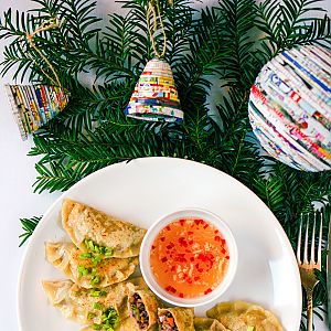 Pierogi z kimchi, tofu i grzybami