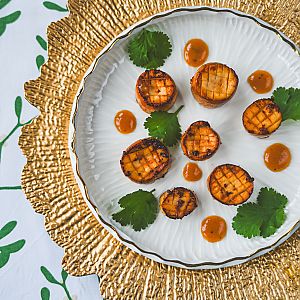 Rozgrzać patelnię na średnim ogniu, dodać wszystkie składniki sosu (poza kolendrą), zagotować i zredukować do konsystencji syropu.