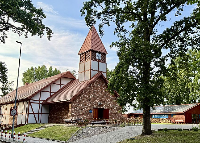 Kościół Niepokalanego Poczęcia NMP. Wysoka na ponad 70 metrów wieża jest ikoną Dąbia, widoczną nawet
