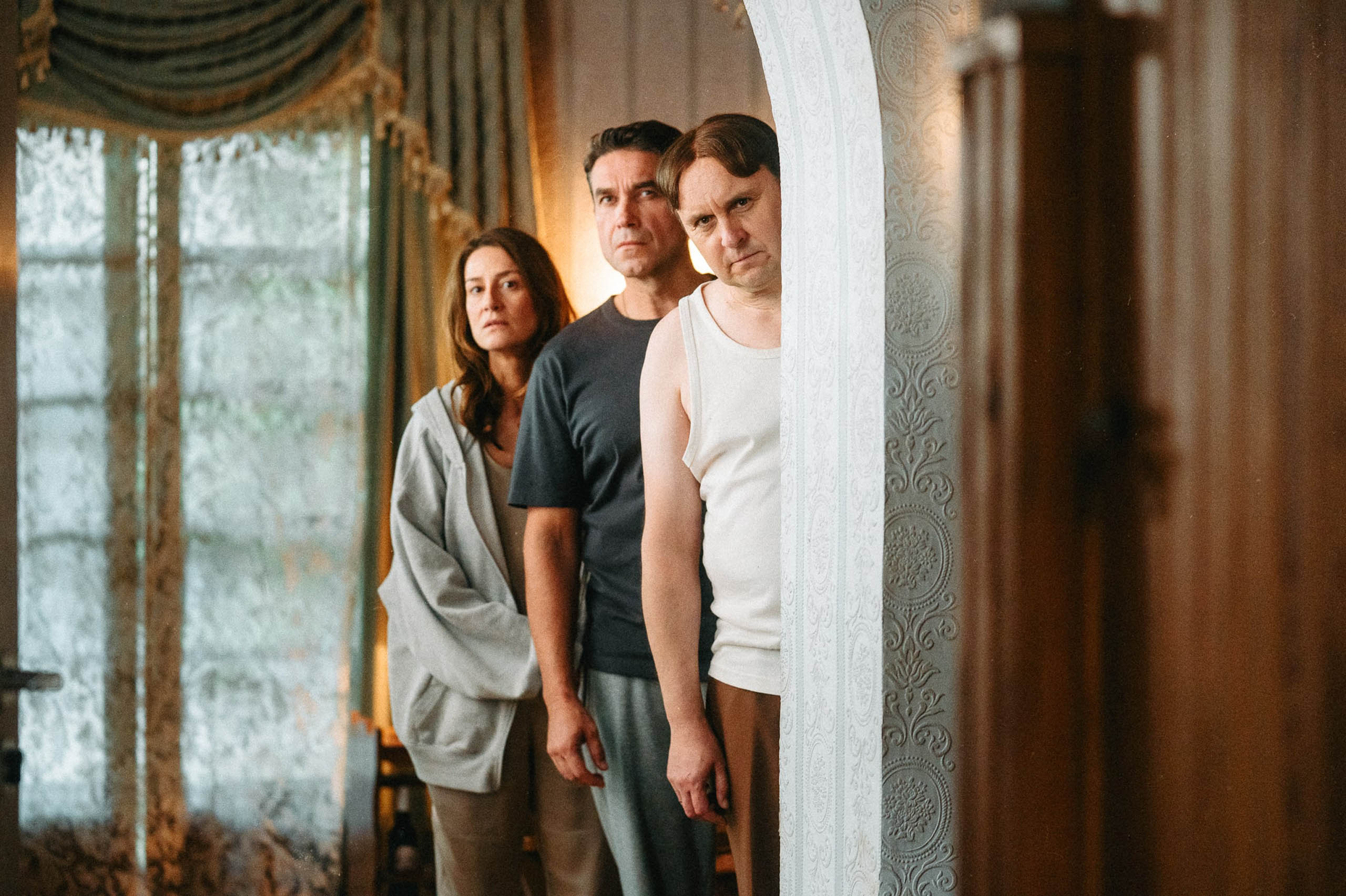 Maja Ostaszewska jako Małgorzata Wilk znów przeszła samą siebie. Nie wiem, czy istnieje żmija posiadająca więcej jadu niż jej bohaterka. Jej wkurw osiąga tu absolutne apogeum. Dzięki temu jego kontrapunkt – tak, subtelne oblicze Małgorzaty(!) – wybrzmiewa wyjątkowo przejmująco. Izabela Kuna także dała popis brawurowego aktorstwa. Jej Wanda Chrapek to roztrzęsiona i rozsierdzona hetera, nieustannie żądna namiętności i czułości. Jest też w niej coś z Dulskiej, co tłumi owe namiętności… Dobrą kreacje stworzyła Magdalena Popławska, jednak jej postać (Grażyna Zięcina) została dziwnie poprowadzona, a w finale wręcz „urwana”, tak jakby zabrakło na nią pomysłu (co nie miało wpływu na znakomitą aktorską interpretację). Trudno znaleźć słowo celnie i wyczerpująco określające pracę Adama Woronowicza nad portretem Tadeusza Chrapka. Wooooow! Mistrzostwo i tyle! Podobnie należy spojrzeć na Marcina Dorocińskiego vel Andrzeja Wilka, który z nawiązką wynagrodził nieobecność w drugich „Teściach”. Jego duet z Woronowiczem i ich „nocne Polaków rozmowy” podlane ognistą (sic!) wodą powinny przejść do annałów polskiego kina. Wojciech Mecwaldowski vel Marek Vajs (właściciel Pensjonatu „Tropical”) postawił na bardzo szeroki komediowy gest i… słusznie! Jest jeszcze przerażający ojciec Wandy (Joachim Lamża), dobra dziecięca rola Noaha Lucewicza (syn Andrzeja) i cała plejada dalszej rodziny Chrapków. Nieco więcej tym razem „sprawców” trylogii, czyli Weroniki i Łukasza (Katarzyna Chojnacka oraz Ignacy Martusewicz), ale mam wrażenie, że twórcy celowo nie chcieli wysuwać ich na pierwszy plan, by ten niemal w całości pozostawiać tytułowym teściom. Takie potraktowanie ich postaci wskazuje też na niechybną kontynuację. Coś czuję, że teściowie odwiedzą wkrótce dzieci w Berlinie, gdzie mieszkają. Strach pomyśleć, jak mogłaby wyglądać kolejna rodzinna „wojna” wzbogacona walorami interkulturowymi.
