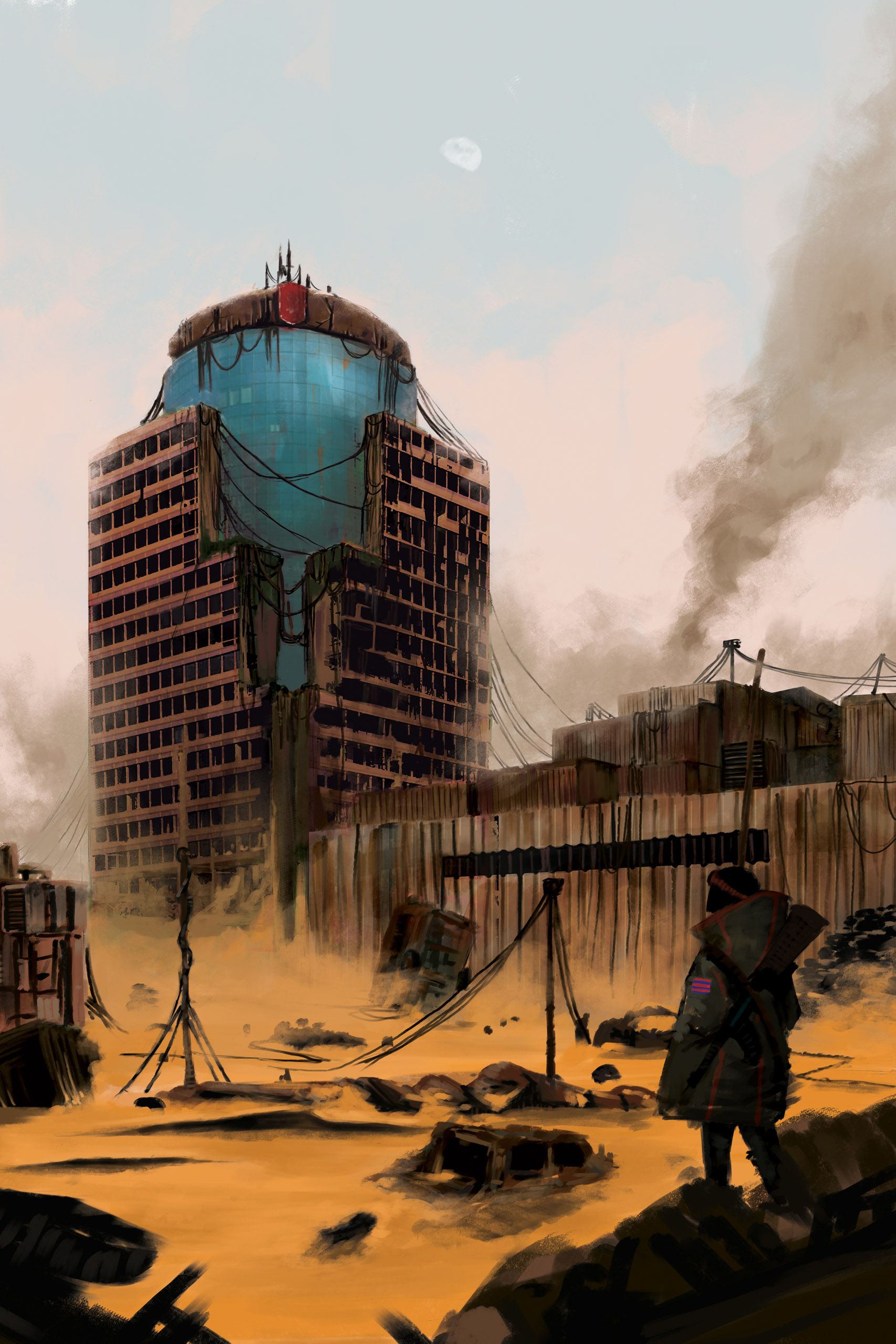 Tworzę… szeroko pojętą grafikę. Nie umiem się zdecydować na jedną formę wyrazu, środki jakie dobieram do realizacji często zależą od aktualnej weny. Lubię malować, głównie digital painting (malowanie techniką cyfrową na tablecie). W kwestii malarstwa, najszerzej rozniosła się seria moich postapokaliptycznych obrazów, dotyczących Szczecina, ale również innych miejsc w Polsce. Kolejną drogą tworzenia jest ilustracja – bardziej komercyjny aspekt mojej pracy. Ilustruję książki oraz ich okładki. Istotna w mojej pracy jest również satyra. Na bieżąco staram się komentować wydarzenia, nie tylko lokalne. Poza statyczną formą wyrazu, nauczyłem się tworzenia animacji poklatkowych. Efekty można oglądać podczas podróży pociągiem w naszym województwie, za sprawą współpracy z Pogotowiem Ratunkowym w Szczecinie. Najświeższym tematem jest zabawa z AI, podobają mi się jej duże możliwości, które kiedyś były zarezerwowane dla dużych, wieloosobowych agencji a dziś są na wyciągnięcie ręki.