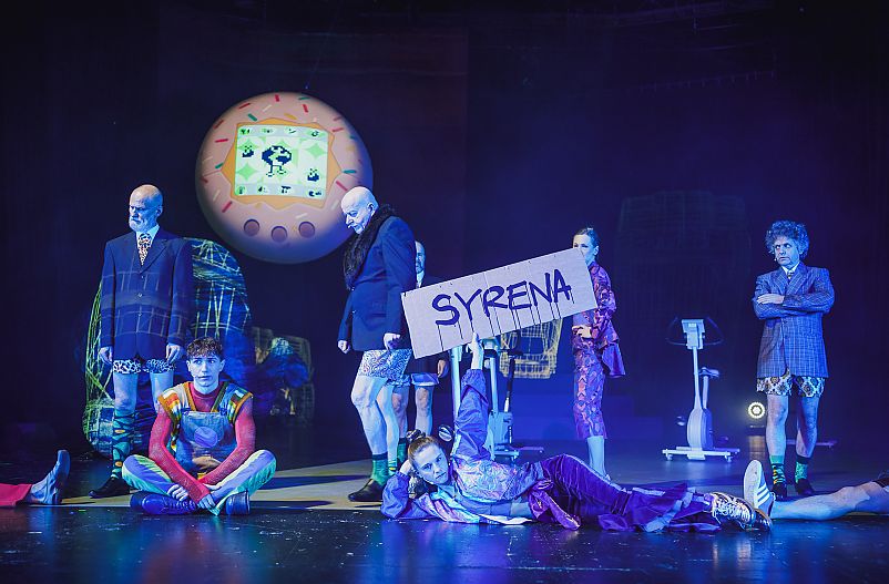 Są jeszcze otwierające i zamykające opowieść personifikacje Ciał niebieskich. Znakomity to duet Iwony Kowalskiej i Jacka Piątkowskiego. Próbują nas wprowadzić w hipnotyczny stan, by oddalić widmo katastrofy klimatycznej. Proszą by zamknąć oczy i zobaczyć lepszy świat. Co z tego jak zaraz trzeba je otworzyć… Nie sprzyja im niestety nieprzekonująca forma „Sztuki protestu”.