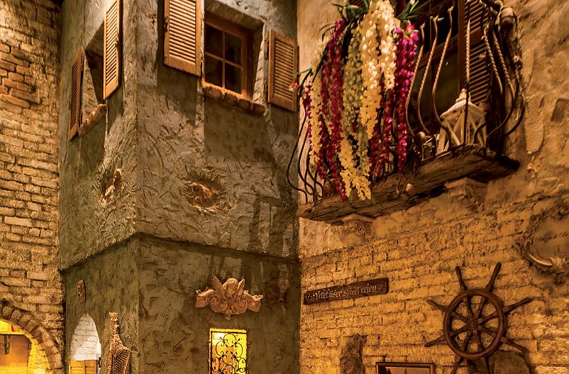 W wejściu, pomiędzy wysokimi kolumnami, wyłaniają się piękne drzwi wyjściowe. Od razu widać, jak wielką wagę przykłada się do dbałości o detale. Przejście do pierwszego z pomieszczeń powoduje, że każdy odwiedzający czuje jakby przeniósł się w czasie do bajkowo pięknej, renesansowej Italii. Ogromna kanapa z czasów kolonialnych zachęca do chwili wytchnienia. W miejscu, gdzie kiedyś była sala kinowa powstał plac, wokół którego wyrastają barwne ściany renesansowych domów, ozdobione autentycznymi detalami znad Morza Śródziemnego. Wspaniałe, kolorowe miejsce z fontanną i zegarową wieżą. Obok żarzy się kominek, zabytkowe okna i balkony, a to wszystko pod dachem, rozświetlonym gwiazdami. Na samej „piazza”, jest wiele niezwykłych mebli i antyków. Wkrótce z "placu" będzie można przejść do restauracji. "Fantasia", która będzie proponować potrawy przygotowane na bazie żywności ekologicznej. Obok kliniki będzie się mieścił sklep z unikalnym wyposażeniem i wyrobami artystycznymi.