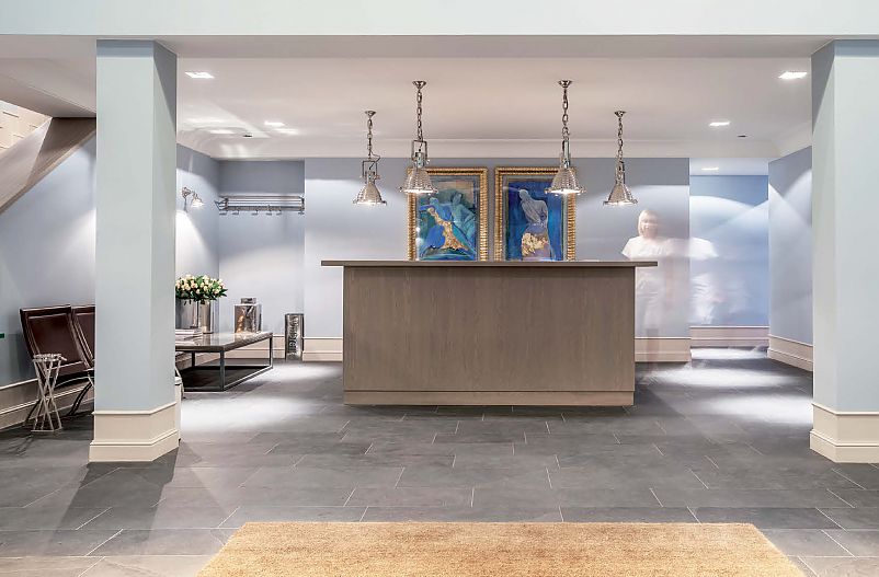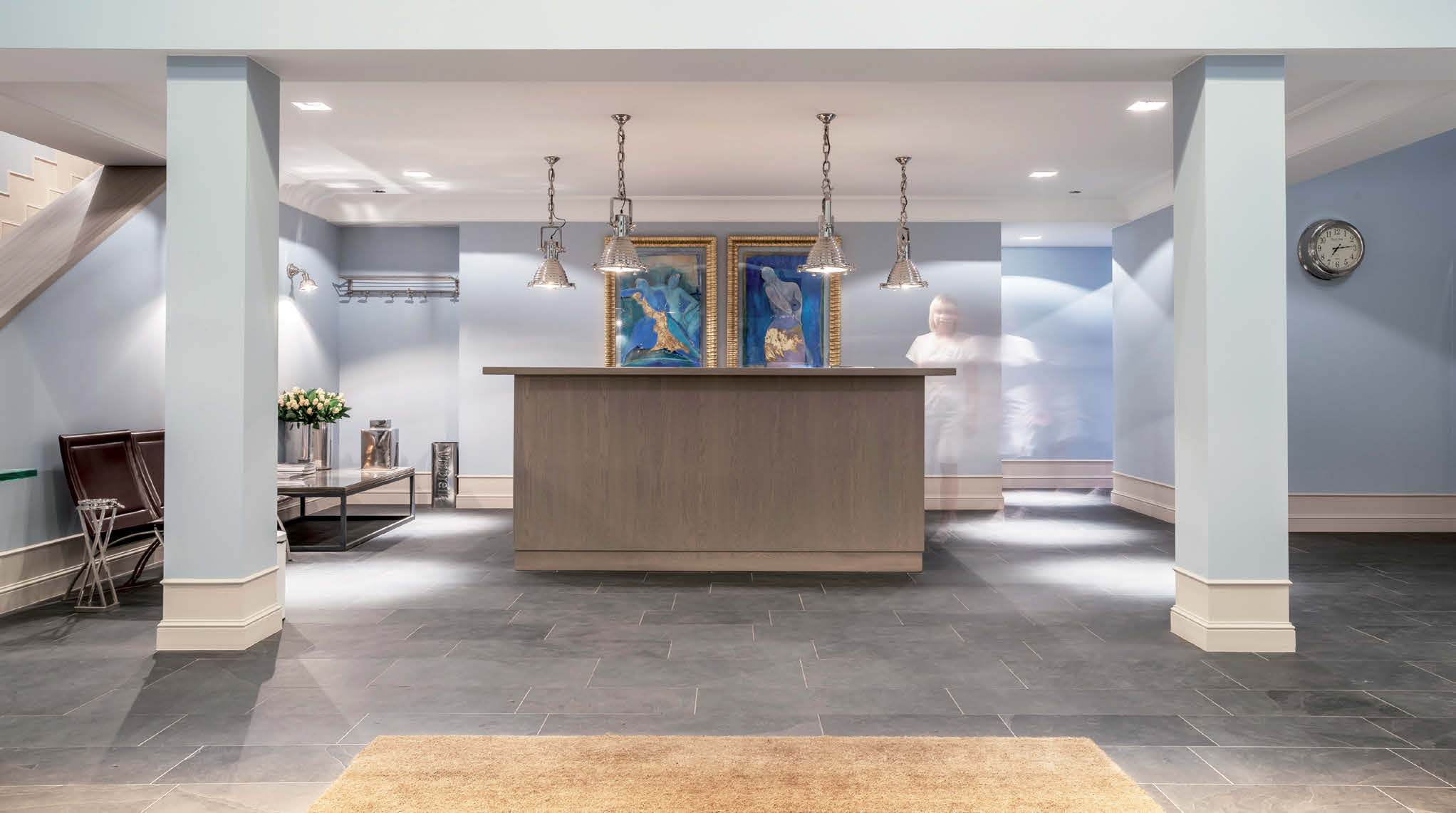 Pierwsze wrażenie po wejściu do kliniki, to ogromna przestrzeń, podkreślona dwoma kolumnami. Jest tu przestronny hall z recepcją, w której wzrok przyciągają dwa obrazy znanej malarki Joanny Sarapaty, nadając charakter i wyznaczając klimat tego miejsca.