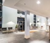 Posadzka hallu to surowy naturalny kamień, połączony z olejowanym jesionem schodów. Warto podkreślić, że elementy drewniane, były wykonane przez stolarzy ze szczecińskiego Pogodna, a nad całością budowlaną czuwał architekt, prezes SARP-u Marek Orłowski. Styl i charakter kliniki uzupełniają drobiazgowo dobrane detale. Lampy, meble holenderskiej marki Eicholtz, aluminiowe i błyszczące, mocno blikują w świetle lamp, a złote ramy obrazów Joanny Sarapaty i Przemysława Cerabież – Tarabickiego przełamują ascetyczność kliniki. Dopełnieniem całości są świeże kwiaty, świece. Złoto i srebro – kolory pozostające w antagonizmie, tutaj doskonale harmonizują ze sobą, a w połączeniu z szarością ścian tworzą spójną kompozycję.