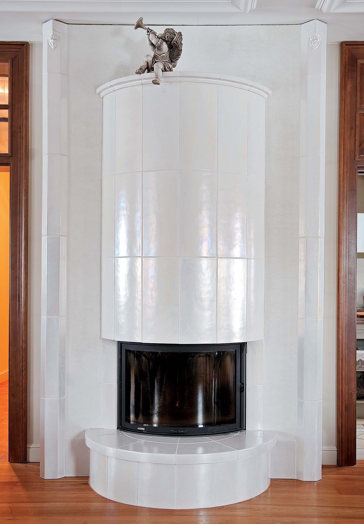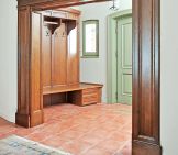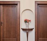 Oryginalnym i przykuwającym uwagę elementem wystroju domu jest lampa z czarnym abażurem umieszczona we wnęce. Cała stolarka drzwiowa i większość mebli, między innymi dekoracyjne konsolki, zostały wykonane na zamówienie w szczecińskich stolarniach według autorskich projektów obu architektek.