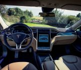 Jeżeli chodzi o wyposażenie wnętrza, to Tesla chwali się "zbudowaniem samochodu wokół kierowcy". Z 17-calowego dotykowego ekranu sterujemy dosłownie każdym elementem samochodu. Mamy tam bezpłatny dostęp do internetu (3G tam, gdzie jest on dostępny), GPS, system audio z radiem FM, DAB oraz internetowym, zestaw głośnomówiący i profile użytkowników z pamięcią dla różnych kierowców. Ponadto system steruje ustawieniami samochodu, jak dostarczaną mocą, wysokością zawieszenia, czy twardością układu kierowniczego. Panoramiczny szklany dach można otwierać po jednym procencie, może on być więc otwarty dokładnie na… 29 procent. Takich detali w Tesli jest bardzo dużo. Mamy również dostęp do danych zużycia energii i ładowania, a nawet informacje o tym, czy ciśnienie w oponach jest poprawne.