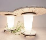 Kable, drewniane i plastikowe szpule po kablach, szafki elektroenergetyczne, to tylko niektóre materiały z których artyści Monika Szpener i Piotr Ledóchowski stworzyli kilkanaście mebli artystycznych takich jak fotele, kanapa, ławki, stoliki oraz lampy. Artyści wykonali te niekonwencjonalne elementy wystroju wnętrz z materiałów recyklingowych, pozyskanych w hali produkcyjnej firmy kk-electronic.